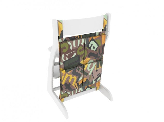Карман имеет крепления и надежно фиксируется позади стула к спинке и нижней планке.