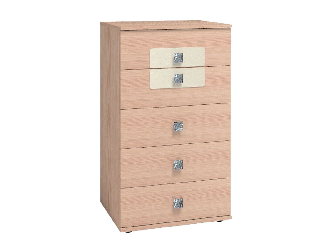 Качественный и модный комод коллекции «Амели». Состоит из пяти выдвижных ящиков, ручка каждого из которых инкрустирована блестящей мозаикой. Эти элементы придают комоду презентабельный и дорогой, но вместе с тем стильный вид. Два верхних ящика дополнительно украшены вставками из винилкожи цвета «топленое молоко». Неважно, какой из двух цветов деревянного каркаса модели вы выбрали - Венге или Дуб отбеленный, цвет вставок неизменен.