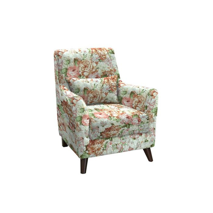 Каркас кресла выполнен из ЛДСП, фанеры, деревянного бруса. Элементы сиденья и спальная часть из ППУ. Наполнитель подушек – полиэфирное волокно и крошка ППУ. Опоры – пластик.