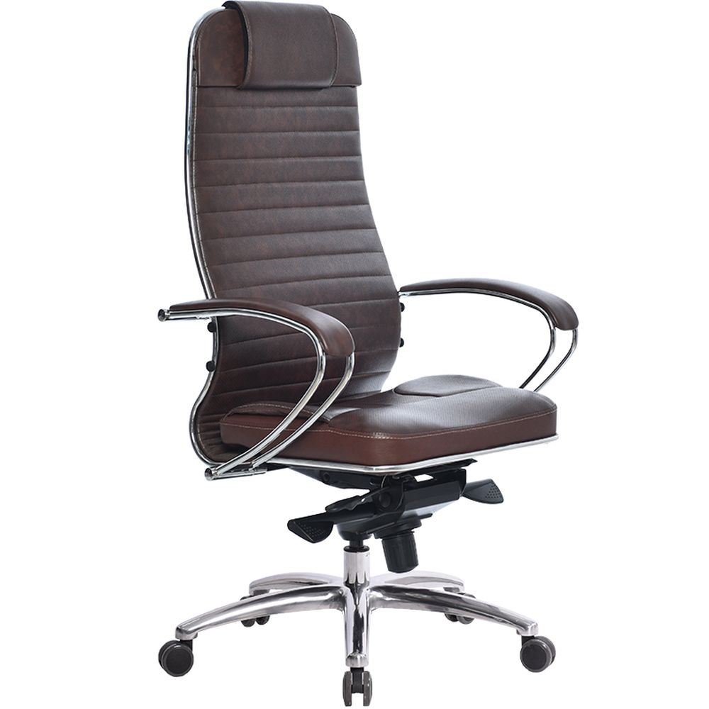 Сверхкомфортное офисное кресло мягкое и удобное и вместе с тем практичное. Дышащая обивка обеспечивает воздухопроницаемость. В компактном и удобном кресле сочетаются продуманная эргономика и привлекательная цена. Кресло Samurai KL-1.03 - это уникальное сочетание компактности, современного дизайна и мягкой обивки. При разработке этого кресла компания "Метта" традиционно позаботилась о комфорте каждого покупателя: эргономичная форма спинки разгружает позвоночник, а специальная конструкция сиденья способствует равномерному распределению нагрузки. Двухзонная регулировка подпора поясницы позволяет создать идеальную поддержку поясницы. Расположиться в кресле еще комфортнее помогут удобные подлокотники с мягкой обивкой, регулировка высоты сиденья, жесткости механизма качания и его фиксация в рабочем положении. Конструкция кресла способствует поддержанию естественного кровообращения и исключает сдавливание сосудов ног. Стальной каркас покрыт хромом и обеспечивает долговечность кресла. Синхромеханизм MULTIBLOCK благодаря раздельному качанию сиденья и спинки позволяет телу периодически разгибаться, что улучшает кровоток и разминает мышцы спины. Обивка из NewLeather — это инновационный экологически чистый материал, производимый из натуральной кожи, армирован нейлоновой нитью, имеет волокнистую натуральную основу, благодаря чему данный материал не уступает обычной натуральной коже по эластичности и прочности. Кресло оснащено съемным 3D подголовником возможностью регулировки глубины, высоты и угла наклона. Каркас подголовника: стальной, покрытый зеркальным хромом, обтянут высокопрочной сетчатой тканью со вставкой из износостойкого перфорированного материала NewLeather из натуральной кожи. Подлокотники: стальные, покрытые зеркальным хромом, с мягкими накладками из NewLeather.
