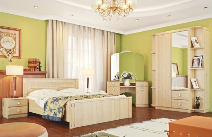 Спальня «София» включает в себя все самые необходимые современные модули мебельной индустрии: двухдверный или трехдверный шкаф, романтичное трюмо – мечту каждой модницы, - кровать, комод, приставку и тумбу, - которые комплектуются индивидуально по заказу клиента. Данный спальный гарнитур будет радовать своих покупателей и зрительно, и функционально долгие годы.