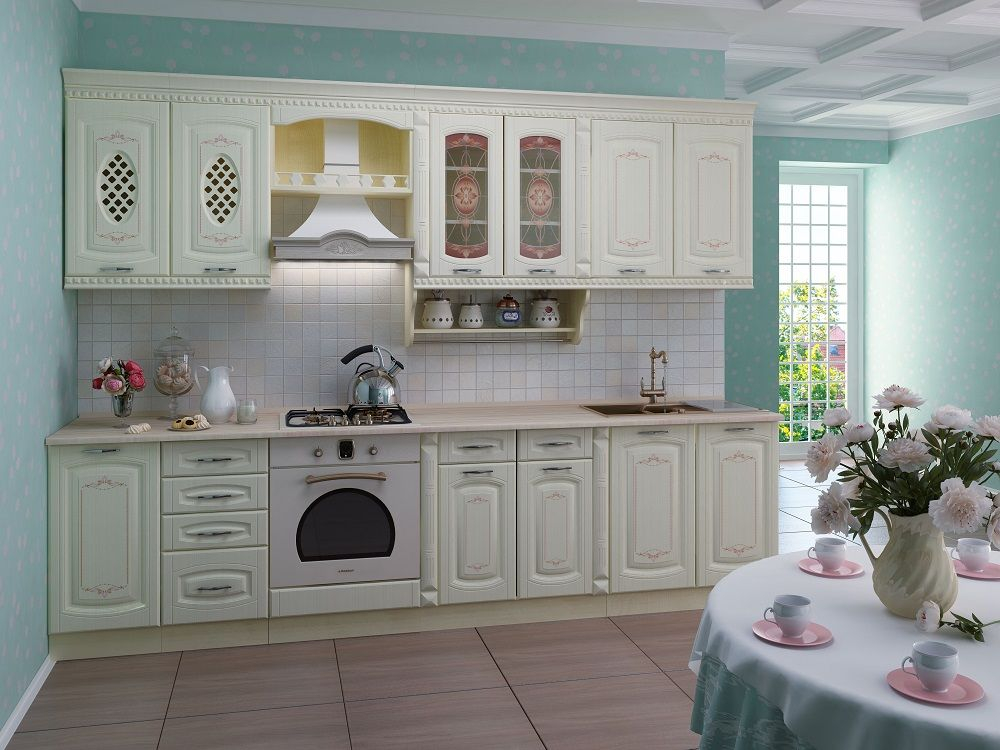 Корпуса "Клен танзай", фасады МДФ "Беленый дуб", постформа "Тростник" Отличительные особенности кухни «Глория 3» - это основательность, правильные формы, продуманность деталей, изящность в пропорциях и рисунке, сдержанная роскошь и респектабельность, а также чувство меры. В качестве элементов декора использованы колонны, фриз, карниз и балюстрада из МДФ. Классическая форма фрезеровки поддерживается строгими линиями и спокойными оттенками рисунка. Отсутствие элементов модерна, яркости оформления и замысловатых форм придает кухне строгий, но при этом изысканный вид. Набор кухонной мебели «Глория 3» состоит из 13 предметов, что позволяет составить комплект, подходящий по размеру для любой кухни (с шагом 200 мм). Все предметы находятся в складской программе. Детали корпуса кухонного набора «Глория 3» выполнены из 16 ЛДСП с использованием кромки ПВХ 0,4 мм и ПВХ 2,0 мм. Шкафы и столы соединяются между собой межсекционными стяжками, что позволяет идеально выровнять линию шкафов. Фасады, карниз, колонны, фриз и балюстрада выполнены из МДФ с глубокой фрезеровкой. Столешница выполнена из Постформинга 28 мм с использованием пластиковой кромки и укомплектована плинтусом. Все столы укомплектованы регулируемыми по высоте ножками, позволяющими идеально установить гарнитур. Дверцы стола и шкафа шириной 400 мм имеют наметки для крепления ручки вверху и внизу, что дает возможность правого и левого навешивания.