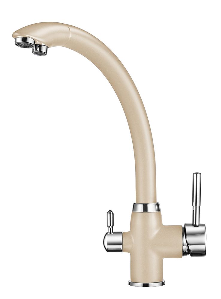 Granula 2167 – это модель, конструкция которой предусматривает наличие крана под питьевую воду. Приобретение такого изделия позволит избежать необходимости использовать отдельный от фильтрующего устройства кран. При этом смеситель является очень функциональным и имеет стильный вид.