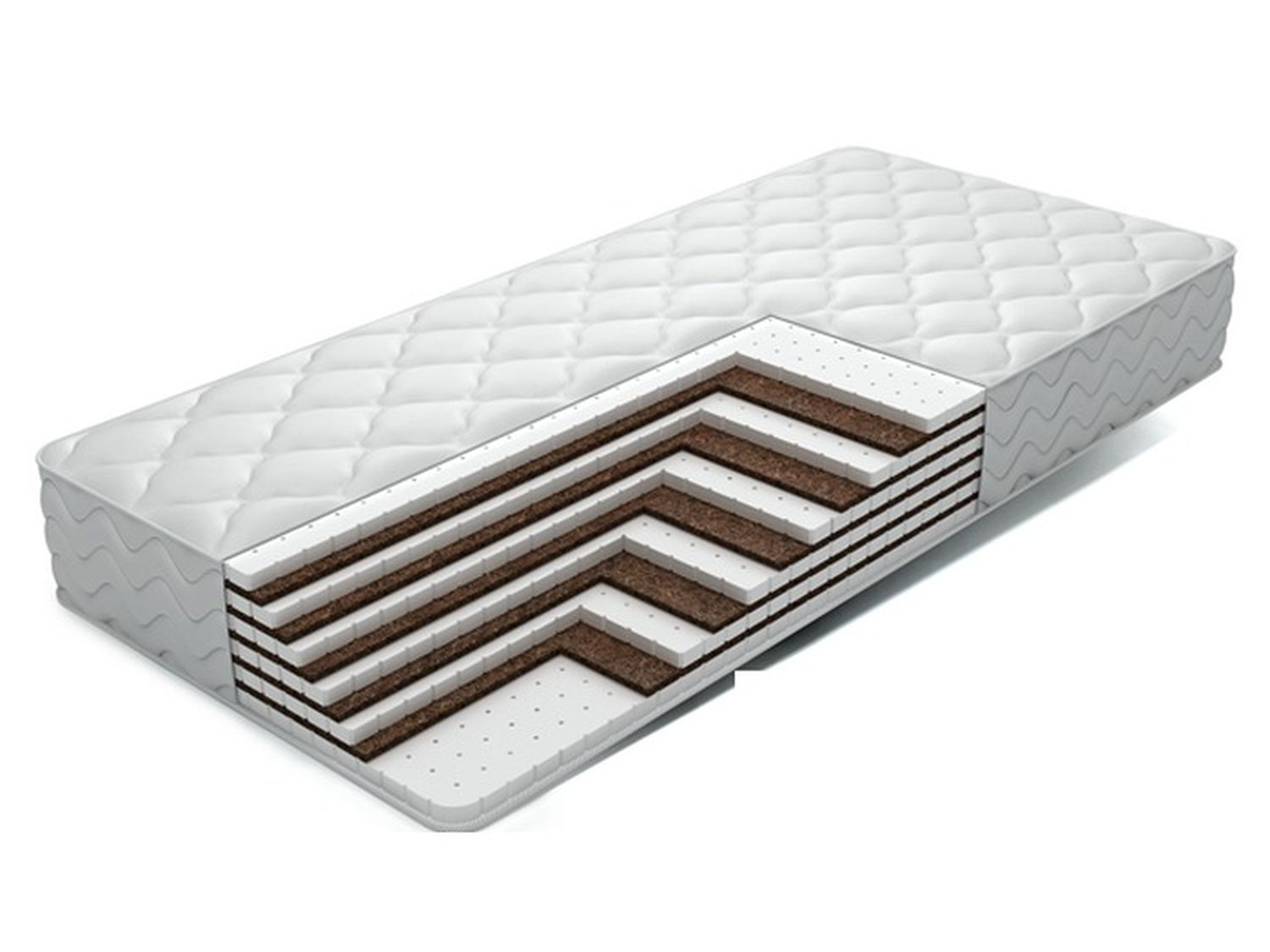 - слои кокосового волокна в два раза тоньше латексных – матрас довольно упругий, относится к изделиям средней степени жесткости;