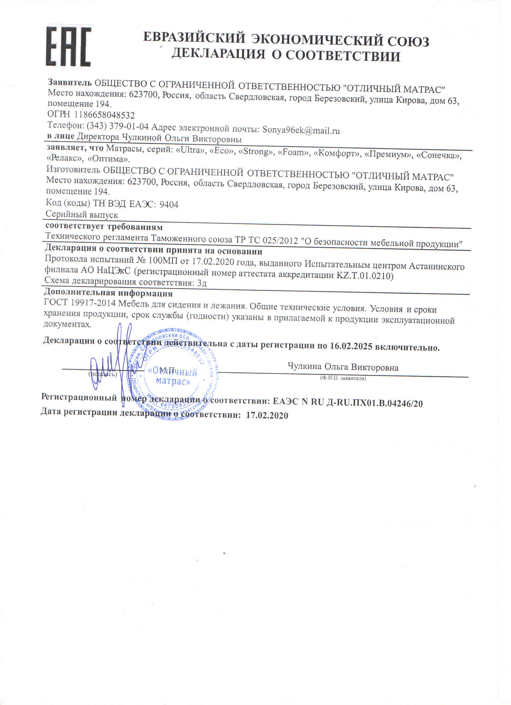 Практичный матрас от мебельной фабрики «Соня» создан с учетом основных требований к современному оснащению кроватей: ценовая экономичность в комплексе с широким выбором моделей. Широкая линейка размеров и типов матрасов, а также современные практичные и натуральные материалы позволят дополнить любую кровать в зависимости от габаритов и предпочтений. Матрас отличается продуманным дизайном в сочетании с функциональностью. Изделия выполнены из высокопрочных материалов.