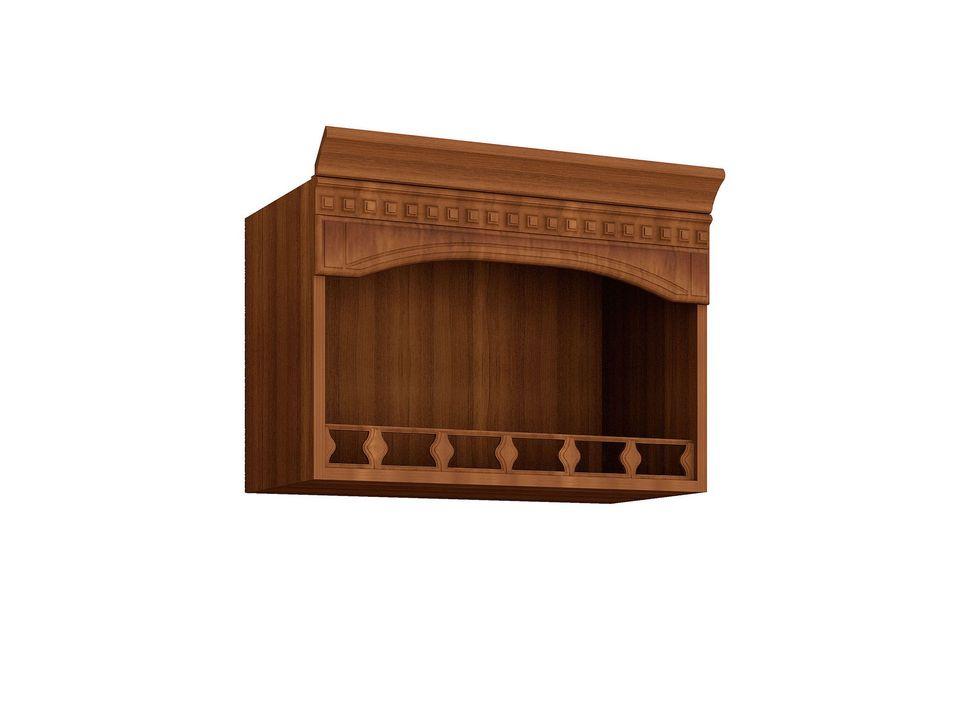 Шкаф-ниша с балюстрадой предназначен для расположения над вытяжкой. Верхний фриз, карниз и арка добавляют модулю шарма. Вся фурнитура в комплекте.