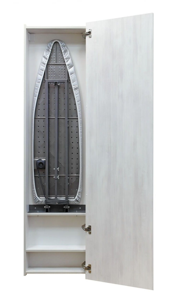Шкаф со встроенной гладильной доской и удобными полками для хранения утюга и других гладильных принадлежностей. Фасад - ЛДСП.