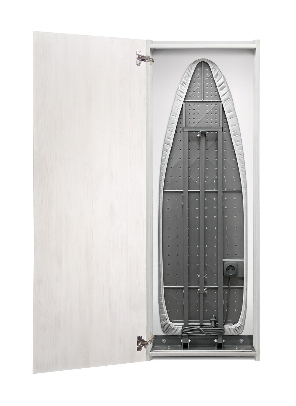 Шкаф со встроенной гладильной доской с глухим фасадом Iron Slim Eco Беленый дуб распашная дверь, открытие влево