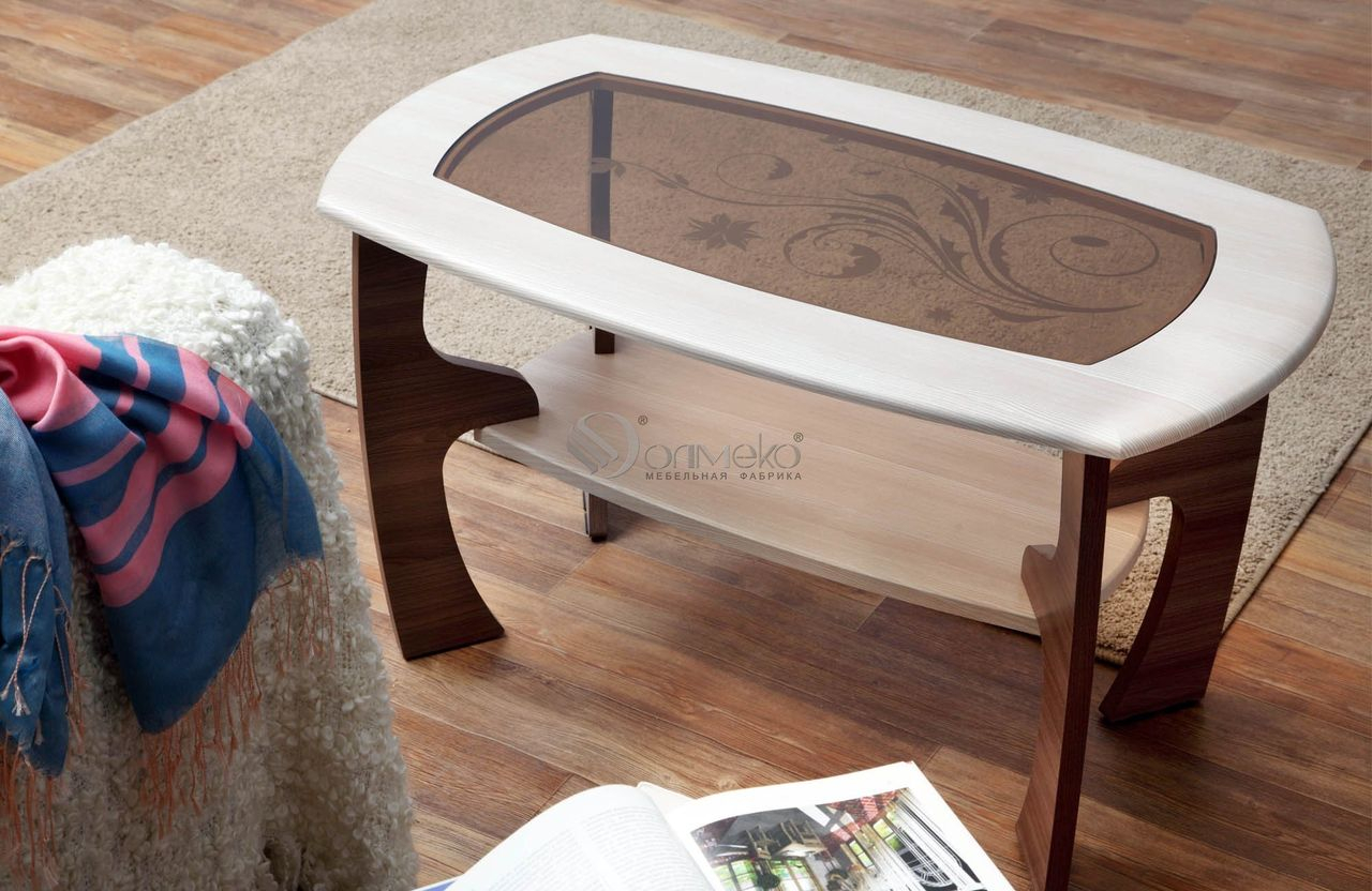 Стол журнальный Маджеста-3 с пескоструйным рисунком.