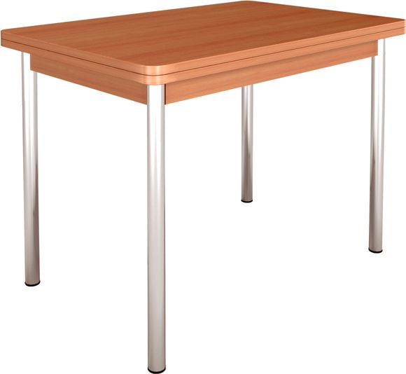 «Орфей 1.2» — обеденный стол с возможностью увеличения столешницы в 2 раза. Вместительную нишу для хранения кухонных мелочей оценит любая хозяйка, а металлические стоевые подчеркнут современный стиль обеденного стола.