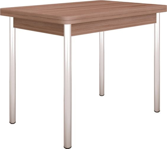 «Орфей 1.2» — обеденный стол с возможностью увеличения столешницы в 2 раза. Вместительную нишу для хранения кухонных мелочей оценит любая хозяйка, а металлические стоевые подчеркнут современный стиль обеденного стола.