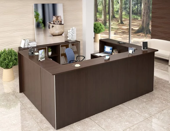 Стол руководителя левый на опорной тумбе малой VELAR ВЛ 148 ДТ Дуб табачный
