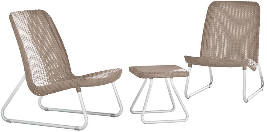 Удобный комплект мебели из искусственного ротанга производства фирмы KETER Group. Два удобных кресла и журнальный столик.